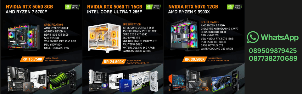 Setelah sedikit modifikasi, berikut spesifikasi PC yang direkomendasikan untuk anggaran sekitar 30 juta rupiah. Separuh anggaran tersebut dialokasikan untuk GPU, alias kartu VGA. Dalam rakitan PC ini, kami menggunakan GPU GALAX GeForce RTX™ 5070 Ti 1-Click OC, salah satu GPU RTX 5070 Ti paling terjangkau yang ada di pasaran saat ini. Hmm, apakah benar-benar layak… selengkapnya