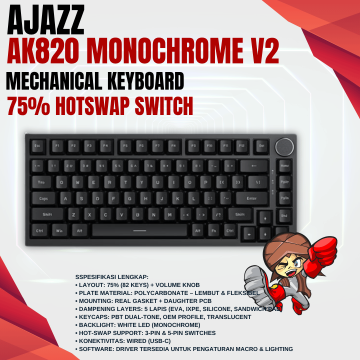 Rasakan pengalaman mengetik dan gaming yang lebih solid, baik , dan nyaman dengan AJAZZ AK820 Monochrome V2