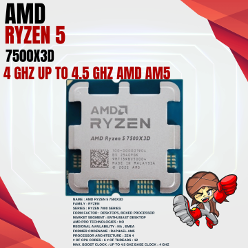 AMD RYZEN 5 7500X3D TRAY 4 GHz Up to 4.5 GHz