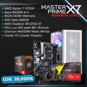 Rp 5.099.000 Rp 5.299.000PROCESSOR AMD RYZEN 7 5700X w/o Cooler MAINBOARD AMD ASUS B450M A II PRIME Memory 16 GB KIT VGA Sapphire RX 6750 XT SSD 256 GB Cooler PC Cooler Paladin Casing PCCOOLER DIAMOND MA100W MESH WHITE PSU AEROCOOL LUX 550W