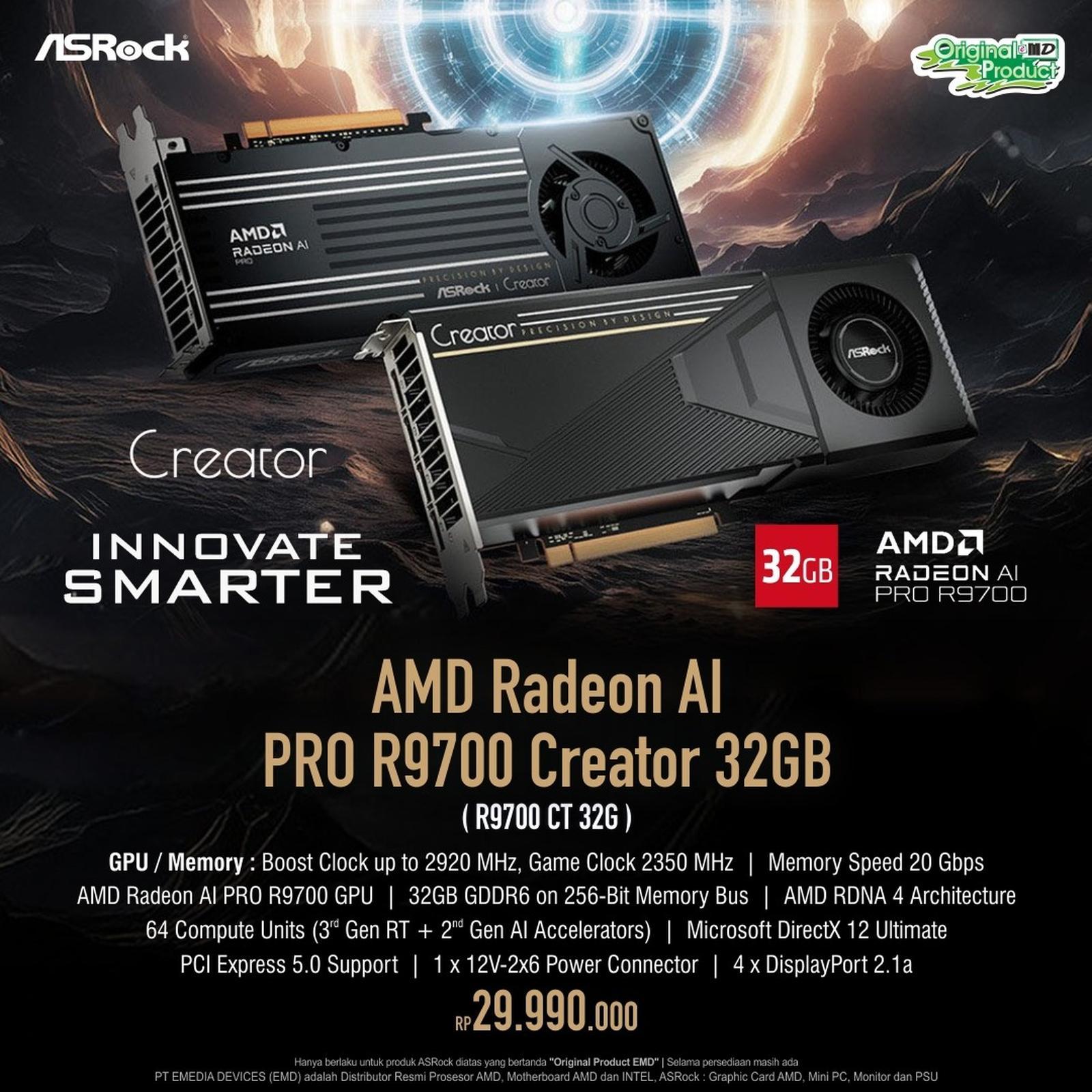 ASRock AMD Radeon AI PRO R9700 Creator 32GB GDDR6