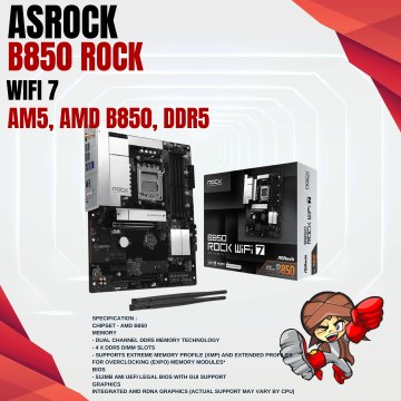 ASRock B850 Rock WIFI 7 (AM5, AMD B850, DDR5, USB3.2 Type-C, SATA3)