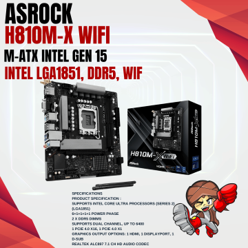 ASROCK H810M-X WIFI ( INTEL LGA1851, DDR5, WIFI, M-ATX )