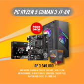 Rp 12.000.000 Rp 13.500.000Spesifikasi detail: AMD Athlon 3000G Mainboard AMD A320M DDR4 8GB SSD 240 GB SATA PSU Paradox 450 Watt Gaming Case Prava 5 Fan RGB Controlled