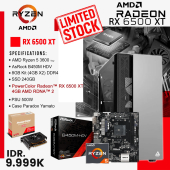 Rp 19.750.000 Rp 22.500.000AMD Ryzen 5 3600 Grs Resmi Mainboard Asrock B450m HDV Memory 8gb kit DDR4 SSD 240gb AMD Radeon RX 6500xt PowerColor PSU 500 Watt 80+ Casing Gaming Paradox Gaming