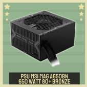 Rp 3.069.000 Rp 3.200.000PRODUCT NAME – MAG A650BN PSU FORM FACTOR – ATX POWER WATT – 650 W INPUT VOLTAGE – 100-240 Vac INPUT CURRENT – 115Vac / 8.0A max. 230Vac / 4.0A max. INPUT FREQUENCY – 50Hz ~ 60Hz EFFICIENCY – Up to 85% (80 Plus Bronze) FAN SIZE – 120 mm DIMENSION – 150 x 140… selengkapnya