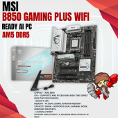 𝗦𝗽𝗲𝗰𝗶𝗳𝗶𝗰𝗮𝘁𝗶𝗼𝗻𝘀 : Chipset – AMD B850 CPU – Supports AMD Ryzen 9000/ 8000/ 7000 Series Desktop Processors – Socket AM5 Memory – 4x DDR5 UDIMM, Maximum Memory Capacity 256GB – Supports Dual-Channel mode Onboard Graphics – 1x DisplayPort Support DisplayPort 1.2, maximum resolution of 4K 60Hz* Slot – 4x PCI-E x16 slot Audio – Realtek… selengkapnya