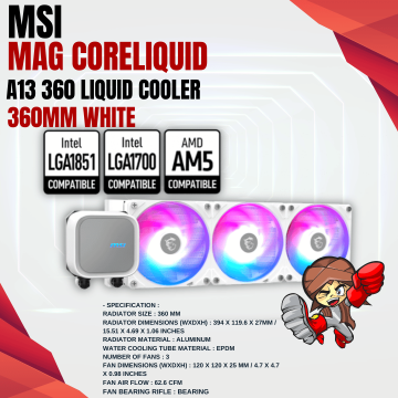 MSI MAG CORELIQUID A13 360 ARGB – CPU Cooler Liquid Fan 360mm – White