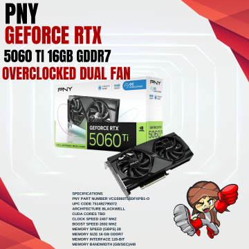 PNY GeForce RTX 5060 Ti 16GB GDDR7 Overclocked Dual Fan GPU VCG5060T16DFXPB1-O