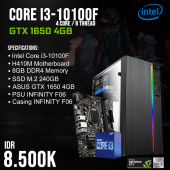Rp 500.000 Rp 575.000INTEL CORE i3 10100F MOTHERBOARD H410M MEMORY DDR4 8GB SSD M2 240GB SATA CASING INFINITY F06 PSU INFINITY VGA ASUS NVIDIA GTX 1650 4GB